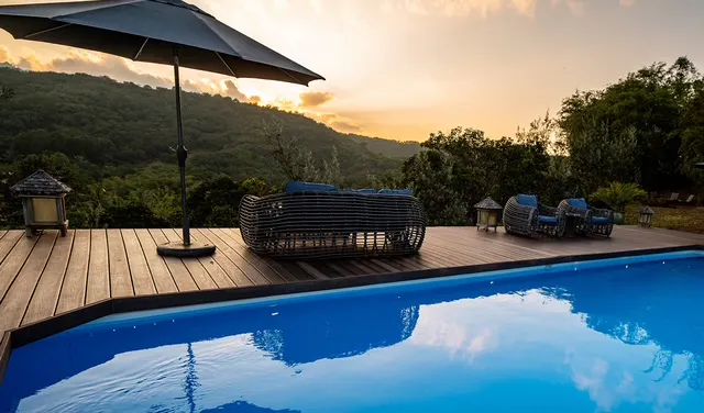 The Palmwood guesthouse is a curated lodging experience. The hilltop retreat, inspired by the mountain Ryokans (country inns) of Japan, is nestled amongst the rolling green hills of Moloa'a - a less traveled pocket on the North Shore of Kauai, Hawaii. The Palmwood Inn is a private, three-room boutique bed and breakfast designed for travlers seeking a more intimate aternative to traditional resorts. Surrounded by lush greenery, birdsong, and gentle trade winds, the inn offers a peaceful escape from crowds while still being perfectly positioned to explore the island’s most beloved experiences.