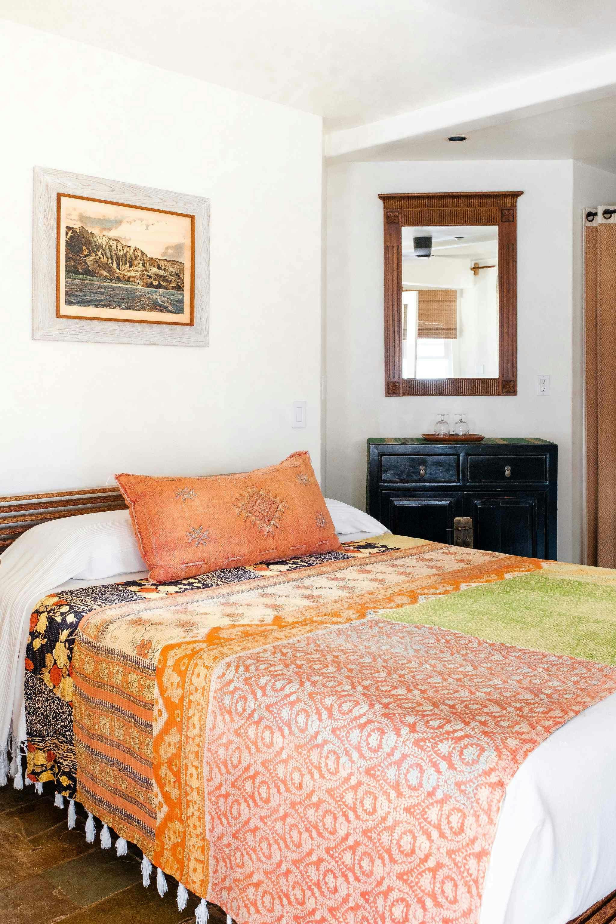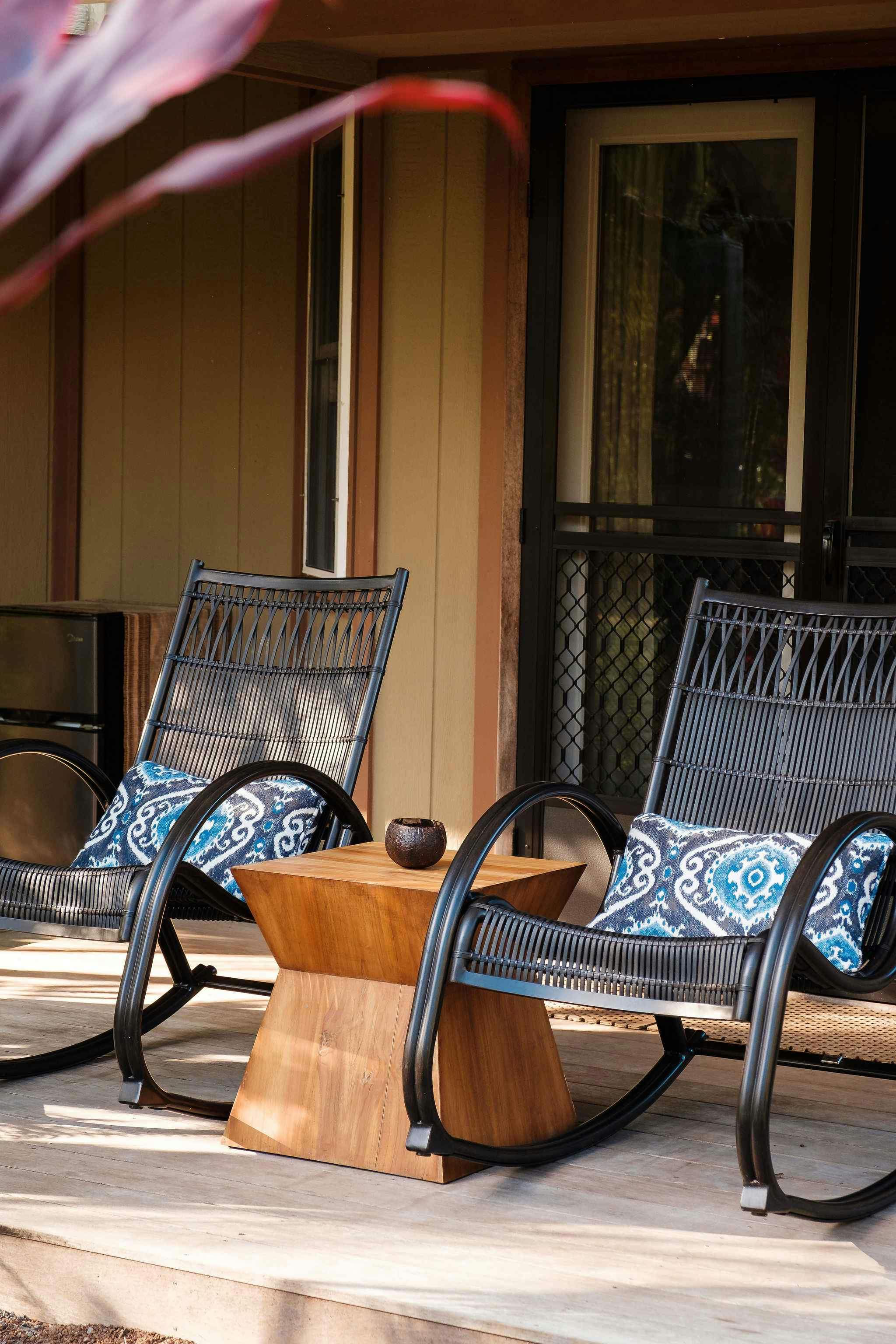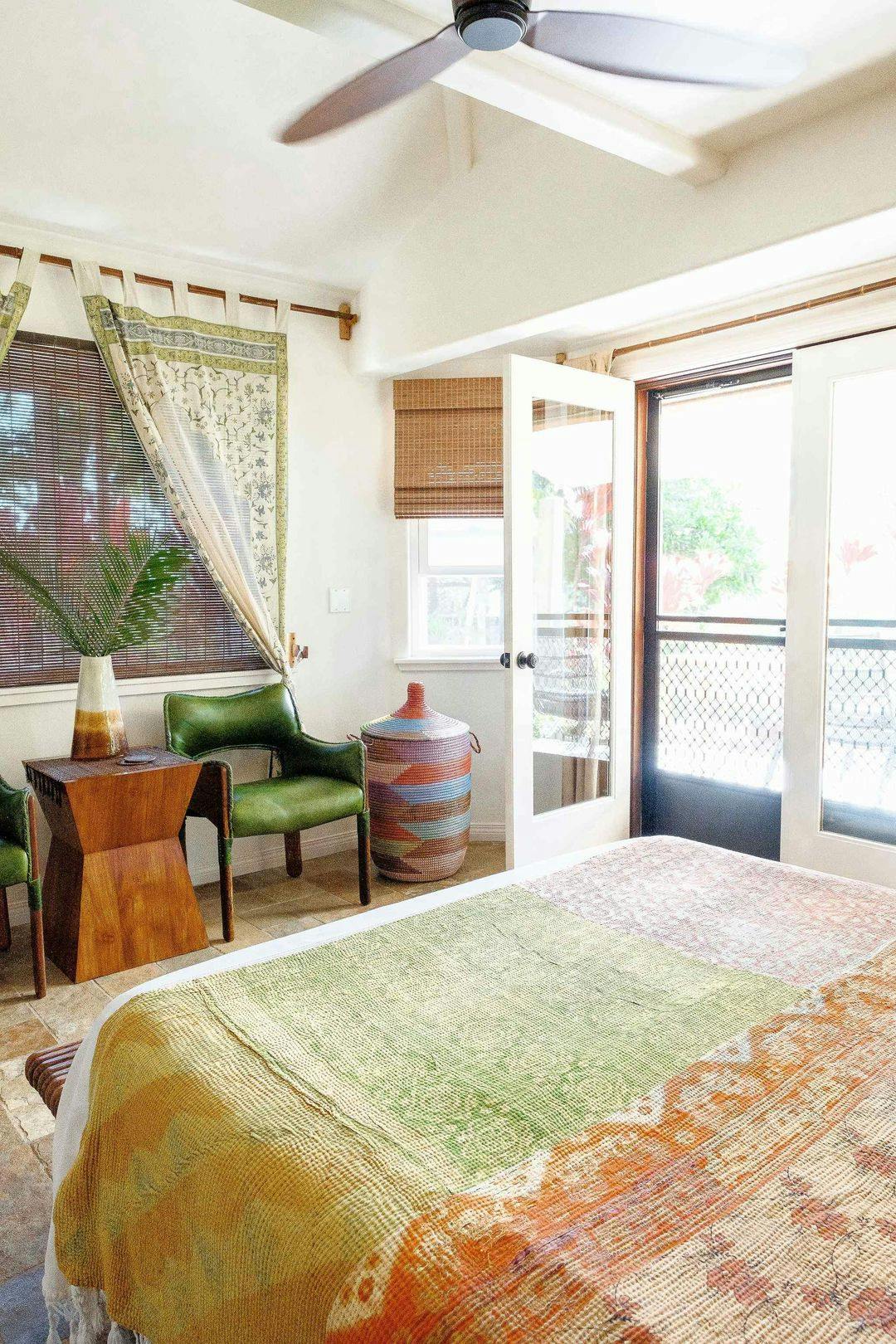 $425 per night. The East Room has its own private entrance, lanai (patio), en suite shower as well as private hot outdoor shower and two person hot tub nestled in a tropical garden. The room is on the small side, however has an open and breezy feel with vaulted ceilings, large windows, and french doors that open out to a garden.